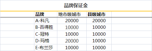 能看到品牌保证金跨度在1000-20000之间,品牌不同,城市不同而有所差异。